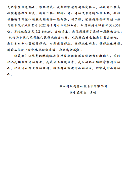 新城投集團黨委將以本次征文比賽為契機,持續(xù)創(chuàng)新黨建活動形式,推動黨建工作與業(yè)務工作深度融合。下一步,各個支部將通過更多的多樣化載體,引導黨員在崗位上亮身份、作表率,為集團高質(zhì)量發(fā)展和“黨旗映勝地”品牌建設(shè)注入源源不斷的“紅色動能”。
