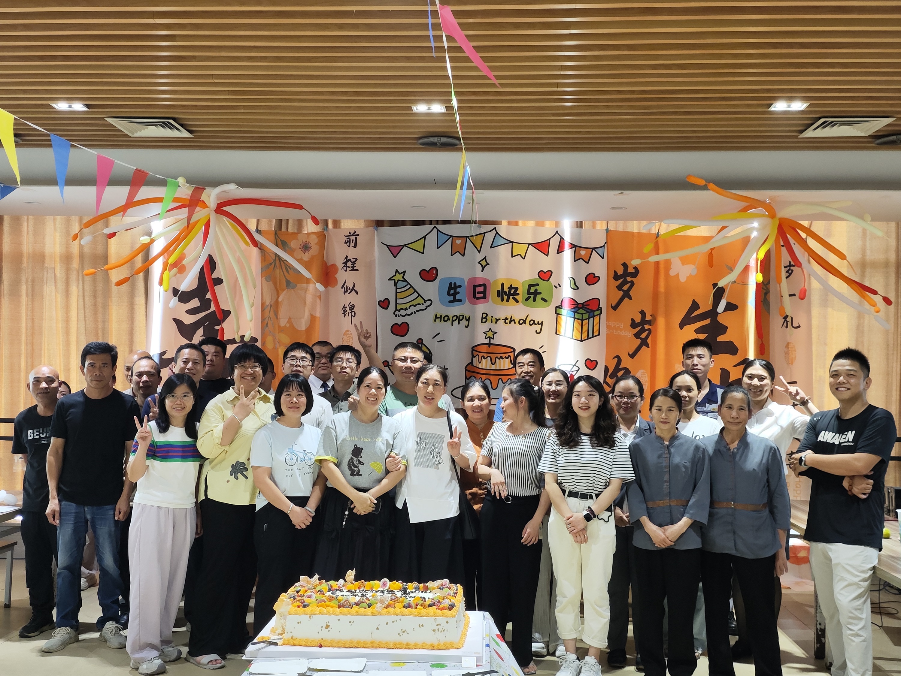 在溫馨的生日歌聲中,壽星們?cè)S下心愿,共同吹滅蠟燭。甜蜜的蛋糕被分切分享,幸福的味道在每個(gè)人心間彌漫。最后,大家齊聚舞臺(tái)前,定格下充滿笑容的合影,為本次生日會(huì)畫上圓滿的句號(hào)。